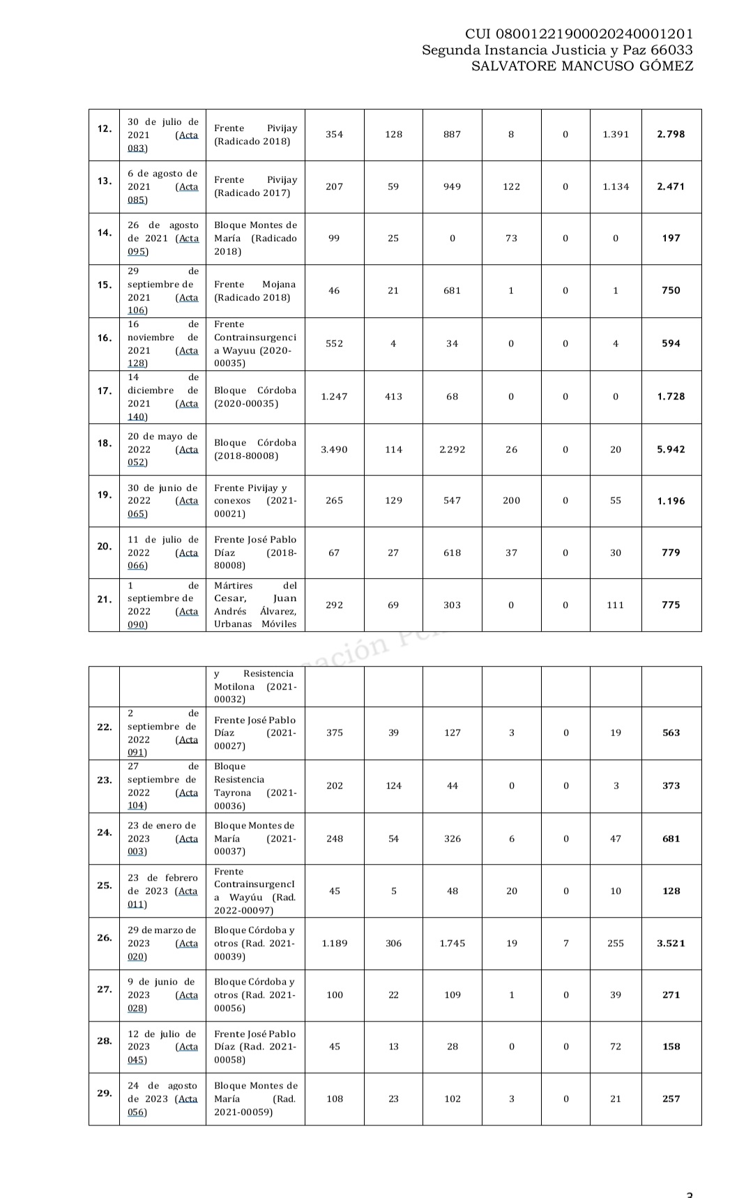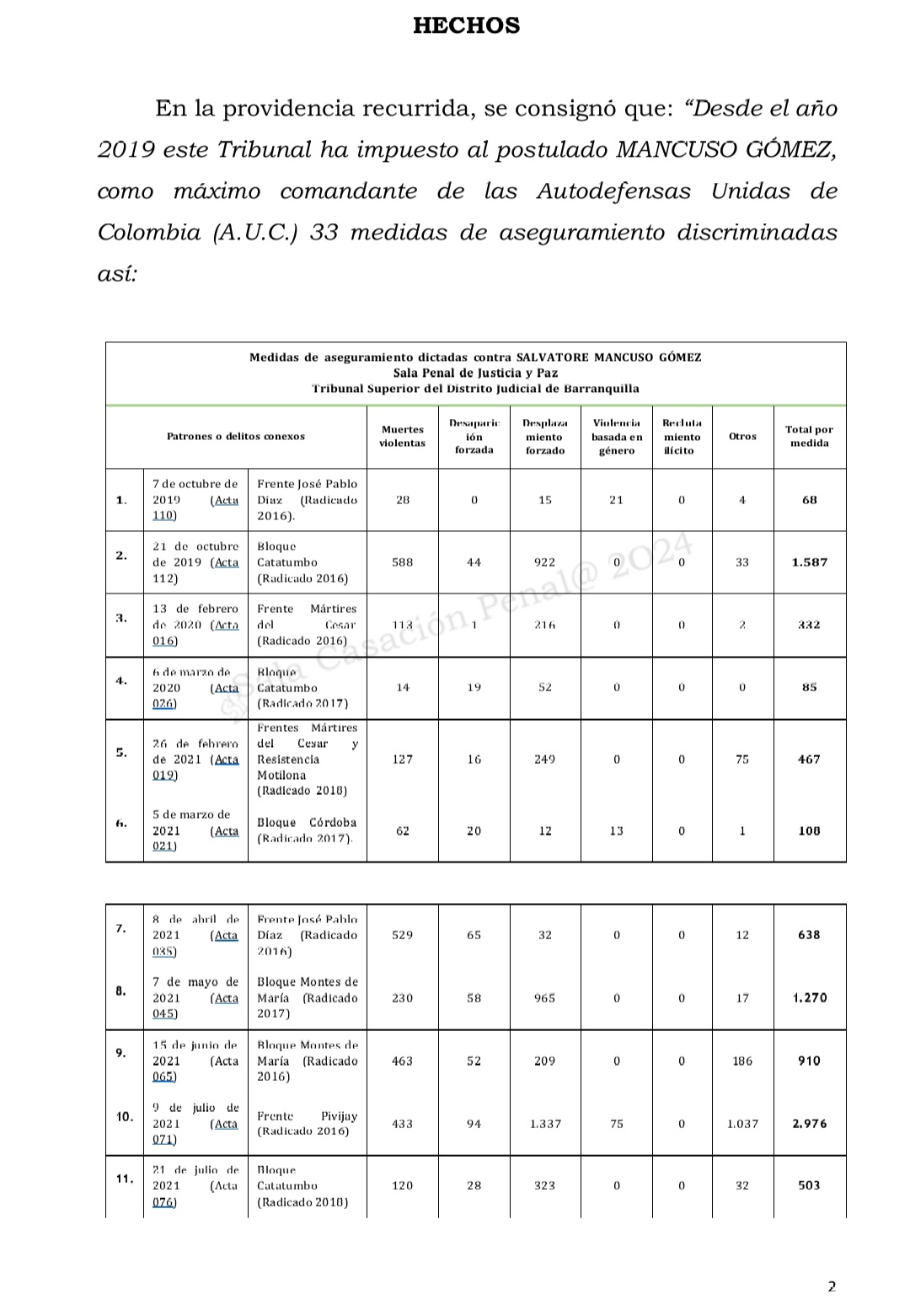 Listado de las medidas de aseguramiento de Mancuso Gomez.